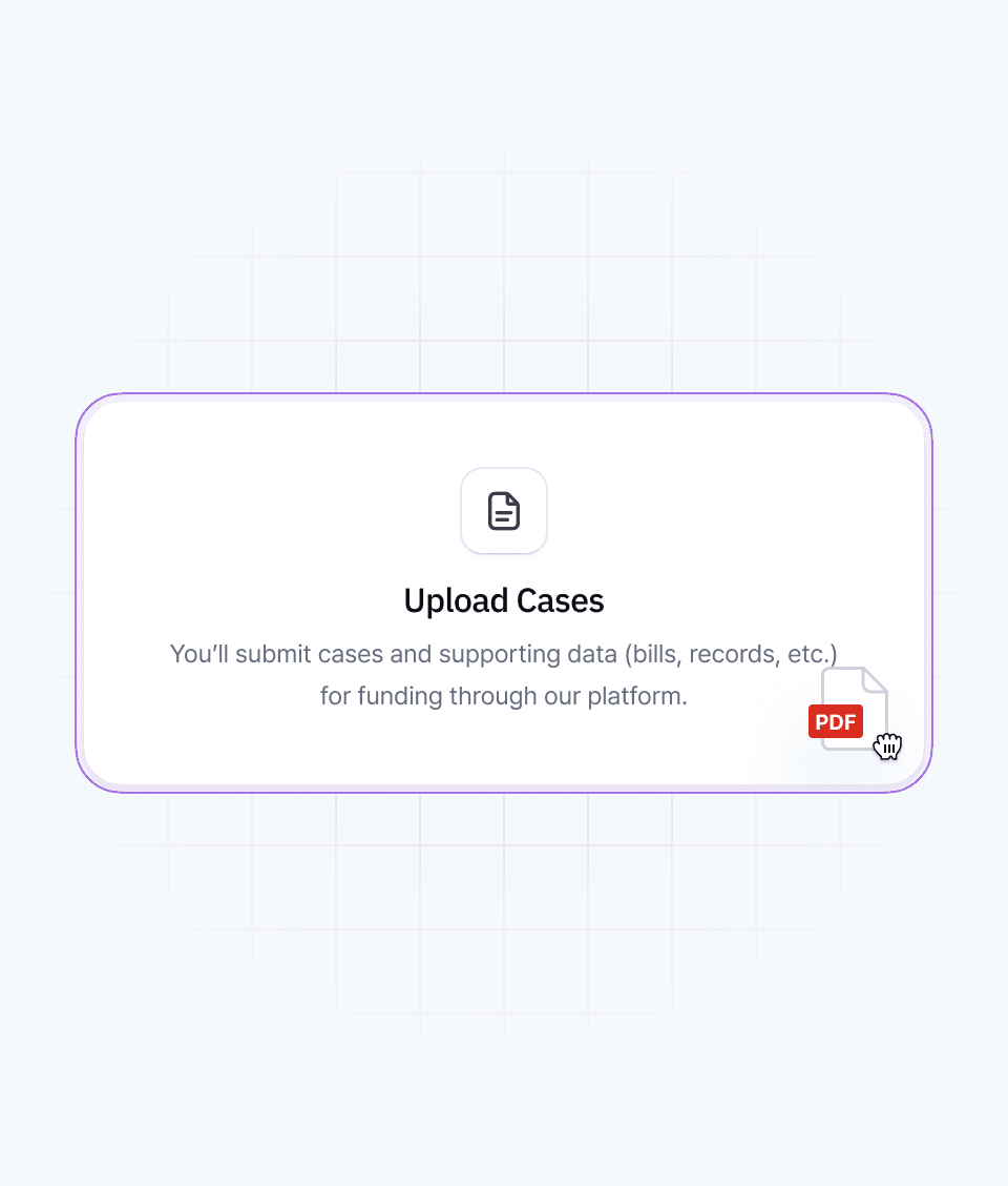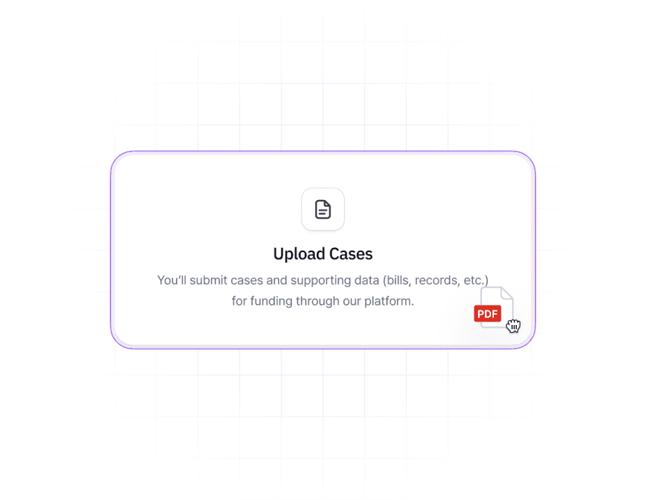 You’ll submit cases and supporting data (bills, records, etc.) for funding through our platform.